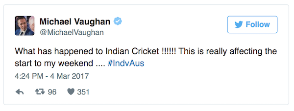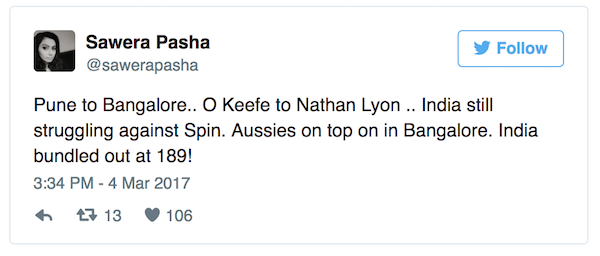 Team India were bowled out for just 189 runs in their first innings, because of the masterclass from the Australian off-spinner Nathan Lyon. With figures of 22.2-4-50-8, Lyon’s efforts etched his name in history as one of the best figures by an overseas spinner in India ever, bringing to the fore India’s woes while playing spin in their own den.