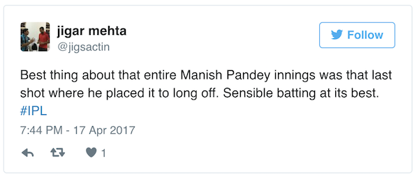 Pandey, played a match-winning knock of unbeaten 69 runs off 49 balls at Feroz Shah Kotla, showing the nerves of steel as KKR beat DD by 4 wickets to climb up to the top of the table.