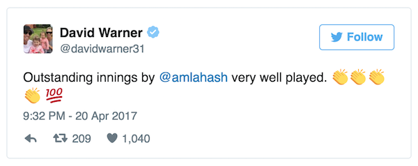 Well, cricket fraternity applauded Hashim Amla’s brilliant innings at Indore.