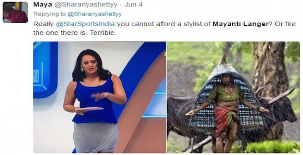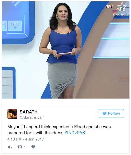 Mayanti Langer, famous journalist and anchor of Star Sports India, has had enough of people taking digs at her outfit during an ODI match of the ongoing ICC Champions Trophy played between India and Pakistan.