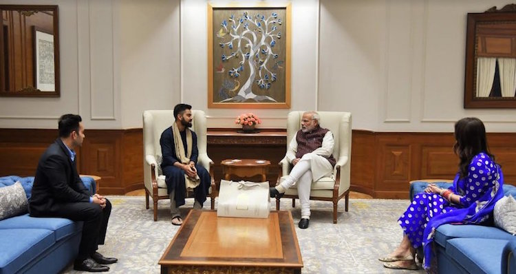 Team India captain Virat Kohli and his beloved wife Anushka Sharma met Prime Minister Narendra Modi at his office on Wednesday.