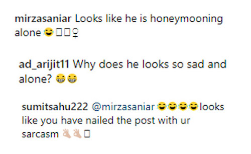 However, among all the comments there was one which really shined and got the maximum attention. It was none other than Sania Mirza who took a dig at the picture and commented: “Looks like he is honeymooning alone.”