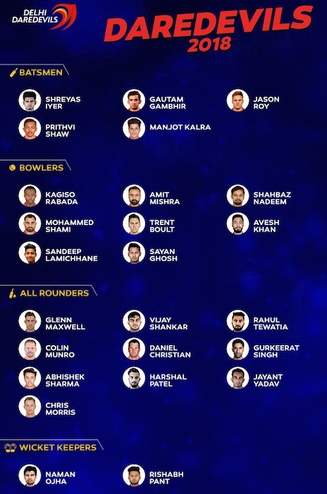 Daredevils even managed to get back Gautam Gambhir for the upcoming IPL season. Along with Gambhir, DD bought a total of 22 players to complete their 25-man squad with eight overseas players.