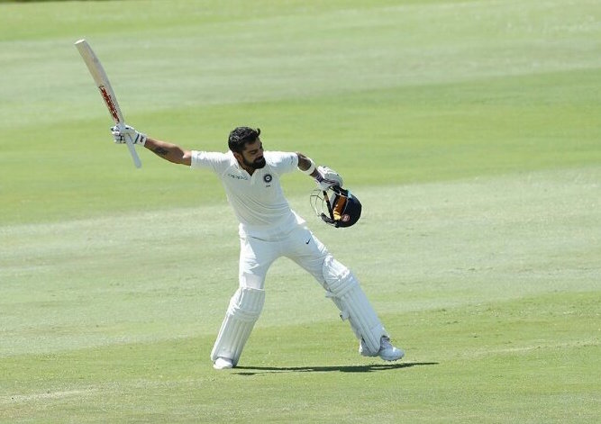 After completing his ton, the Indian captain jumped in the air, had a look at the dressing room and shook hand with his partner Ravichandran Ashwin.