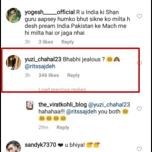 Chahal commented on the photo and tagged Rohit’s wife Ritika Sajdeh and asked, “Bhabhi jealous? @ritssajdeh”