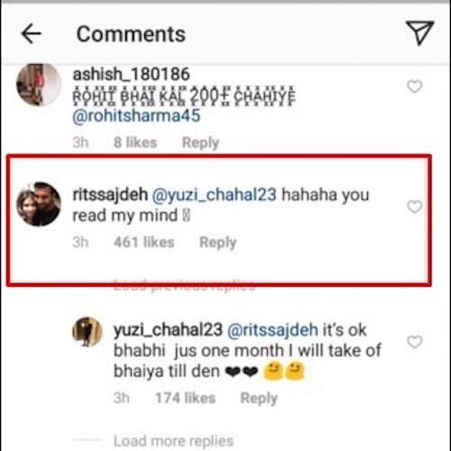 Ritika is not someone to bow down and she replied in a sporting manner, “@yuzi_chahal23 Hahaha you read my mind.”