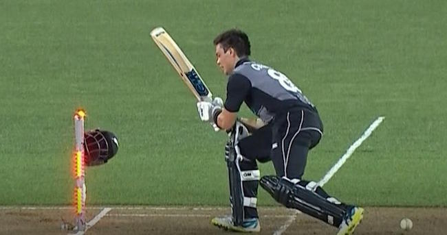 New Zealand’s young left-handed batsman Mark Chapman got out in the unluckiest possible way during the 5th T20I against Australia in the tri-nation series on Friday.