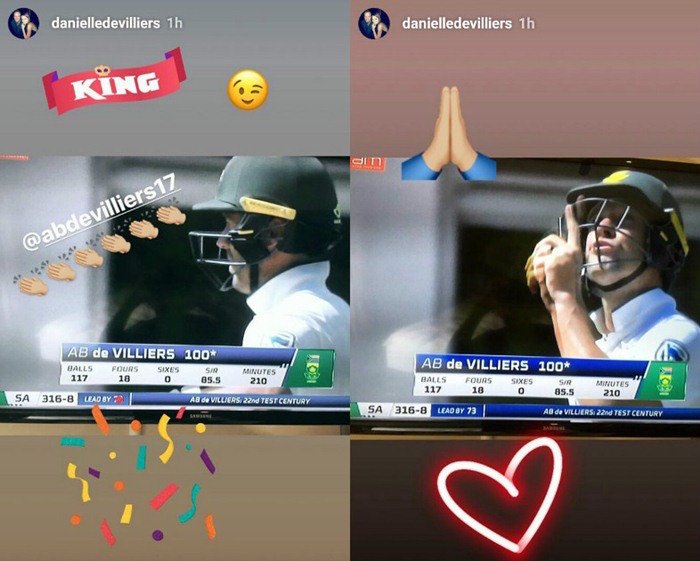 AB de Villiers’ wife congratulated her husband on scoring his 22nd Test ton