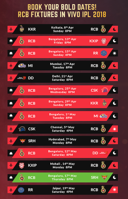 Here’s the complete schedule for Royal Challengers Bangalore: