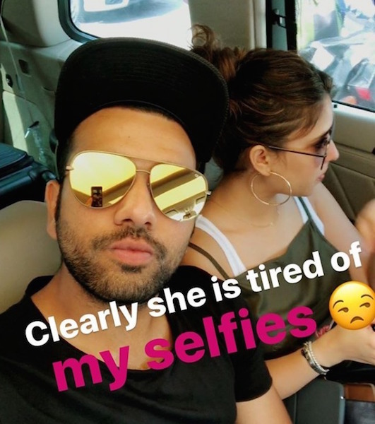However, Ritika sometime seems to get annoyed off Rohit being selfie frenzy. In this picture, Rohit has himself mentioned that his wife is tired of his selfies, and her expressions also clearly say so.