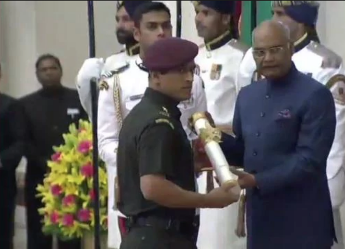 Indian cricket legend Mahendra Dhoni received the prestigious award from the President of India, Ram Nath Kovind, at an investiture ceremony at the Rashtrapati Bhawan in New Delhi on Monday.