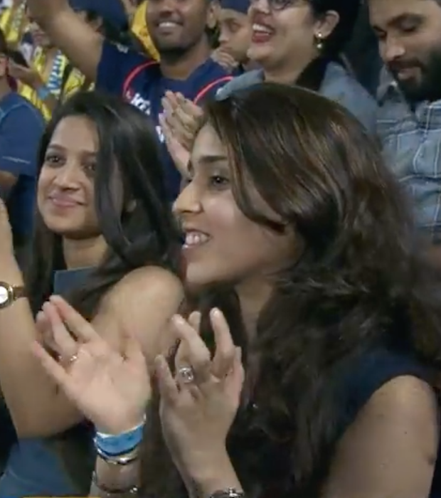 At one moment, when Rohit played a one-handed six off Shane Watson’s delivery in the 14th over of MI innings, an excited Ritika acknowledged her husband’s gorgeous shot with a beautiful smile.