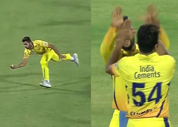 Thakur, who had just bowled the ball, had to make reasonable ground on his follow through to complete the catch with one hand. Suresh Raina and others went ballistic when the bowler grabbed the impossible looking catch.