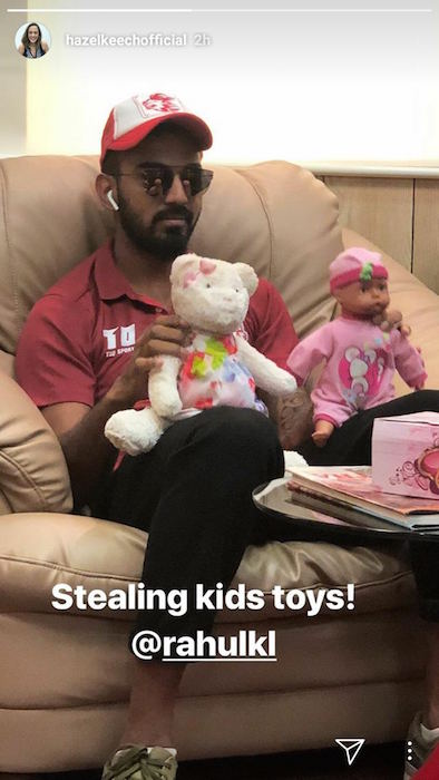 In a recent incident, Hazel clicked a photo of KL Rahul with the toys which kids normally play with and termed the Punjab opener as a ‘toy stealer’. She captioned the pic as, “Stealing kids toys rahulkl.”