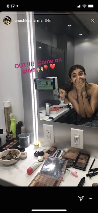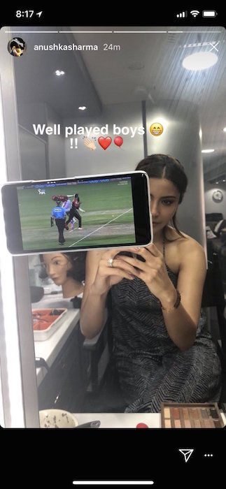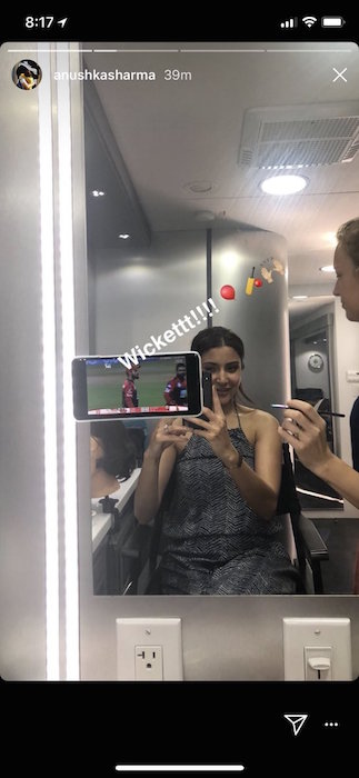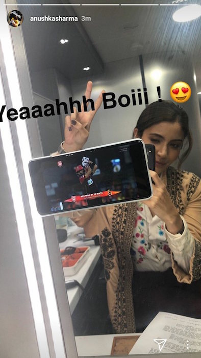 On Monday, Anushka took to Instagram to post series of stories where she can be seen cheering for Virat and his team.