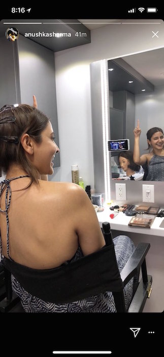 Getting her makeup done in vanity van during a shoot for the upcoming film ‘Zero’, Anushka was watching every action of RCB vs Kings XI Punjab (KXIP) match.