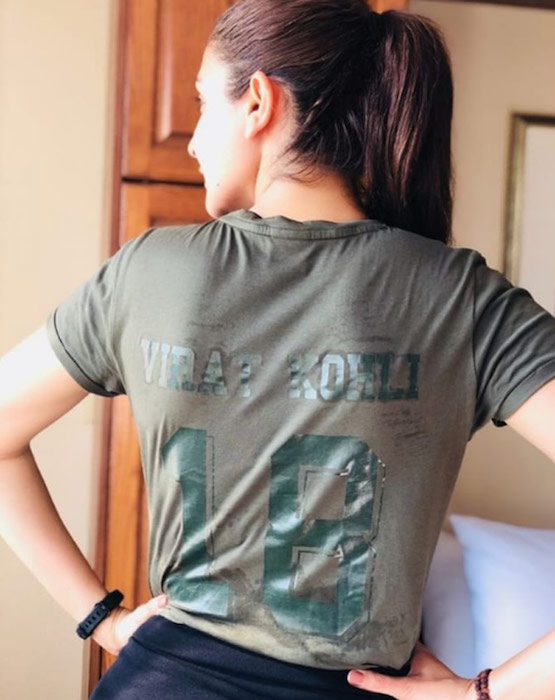 She even posted a picture on social media wearing a jersey with number 18 and Virat Kohli written on the back. She captioned the image, “Come on Boys.”