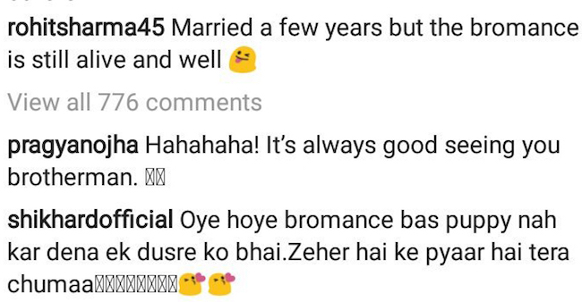 Rohit posted the picture of the two with a hilarious caption which read, “Married a few years but the bromance is still alive and well.”