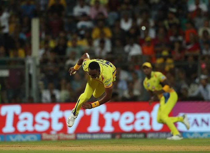 However, the highlight of the match was the catch that Dwayne Bravo took on his own bowling. Dwayne got Yusuf Pathan out by taking his catch on his follow through by diving right and then rolling over before performing his “Run the world” dance.