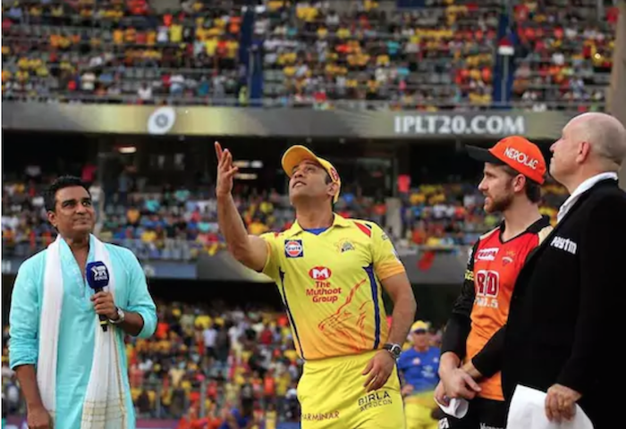 MS Dhoni flipped the coin and SRH skipper Kane Williamson called ‘tails’ which is usually the drill during the toss. Former Indian cricketer Sanjay Manjrekar seemed to be confused after the toss was flipped as he kept asking Dhoni about who called ‘tails’ instead of Williamson.