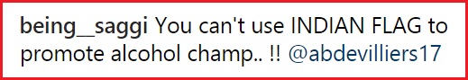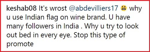 ABD recently promoted the Infinity wines brand which is now available in India. He posted an update about the same on his official Instagram handle. But what made the fans unhappy was the use of the Indian flag.