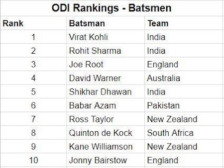 Here are the ODI rankings of players as on September 30,2018: