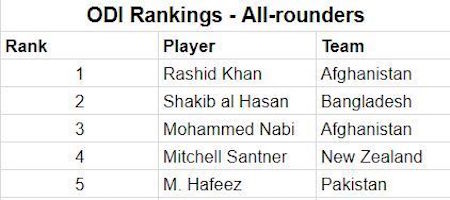 Also, Rashid displaced former Bangladesh captain Shakib Al Hasan to become the top-ranked all-rounders in ODIs while he continued to be second to Jasprit Bumrah in the ODI rankings for bowlers.