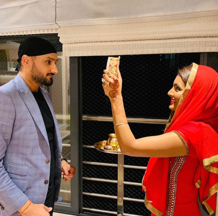 3.) Harbhajan Singh celebrated the festival with his wife Geeta Basra, wishing her well on Instagram