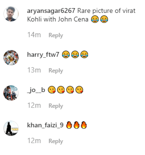 “John Cena shaking hands with our team captain but u just can’t see him,” read one of the many comments on the viral post.