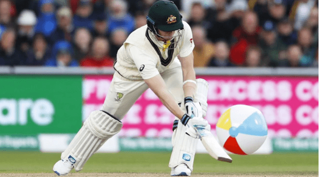 In the 32nd over of the Australian inning, objects like beach-ball and chips packet gained access to the pitch due to strong winds. The powerful winds also knocked off the bails, causing frustration and delay.