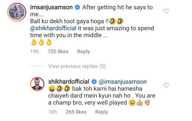 At the end of the innings, his partner Sanju Samson revealed what Shikhar Dhawan said to him after getting hit. “Ball ko dekh toot gaya hoga“, said Dhawan to Sanju and admitted that it was a painful blow.