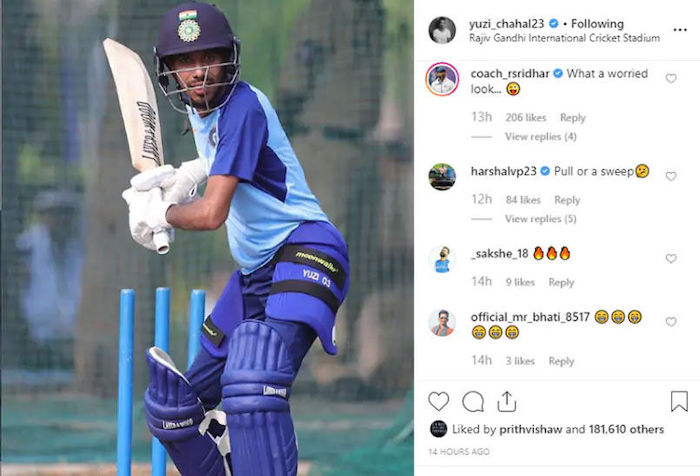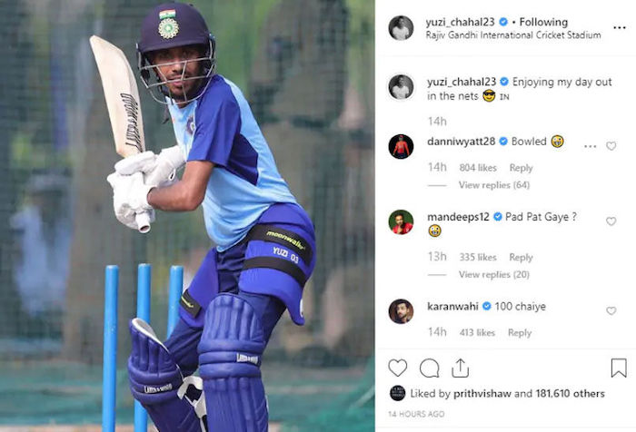 Yuzvendra Chahal delighted his fans by sharing a picture of himself batting in the nets. However, some from the cricket fraternity couldn’t resist teasing the Indian spinner for his latest post on Instagram.