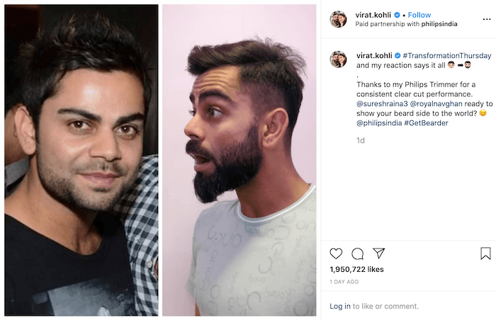 On Thursday, Virat took to Instagram to post a transformational picture of himself. On the left is his view from more than a decade ago where he could be seen sporting a stubble on his chubby face. On the right is his picture from the present day, where he could be seen sporting a thick beard. He captioned the photo: “#TransformationThursday and my reaction says it all.”