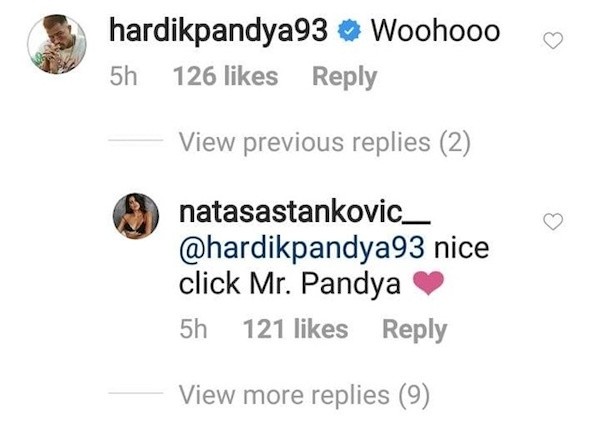 Natasa replied to Hardik – “Nice Click, Mr. Pandya ” and left a heart in the end.