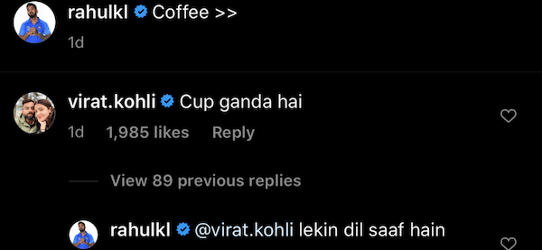 After reading this comment from Kohli, Rahul was quick to comment. He came up with a perfect reply to the Indian skipper, “lekin dil saaf hain.”