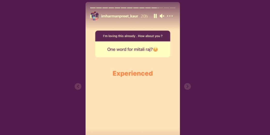The explosive striker was also quizzed to describe senior lad Mithali Raj in one word. Harman responded and termed Mithali as an ‘Experienced’ player.