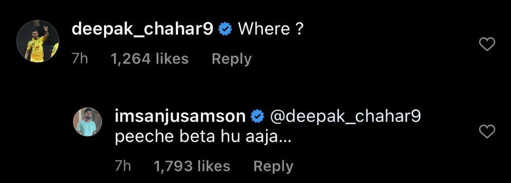 However, Chahar tried to pull the Kerala lads leg by leaving a cheeky comment, asking where exactly Samson is going. The Rajasthan Royals (RR) skipper responded to Chahar in a side-splitting way by suggesting the Rajasthan-born to come along with him.