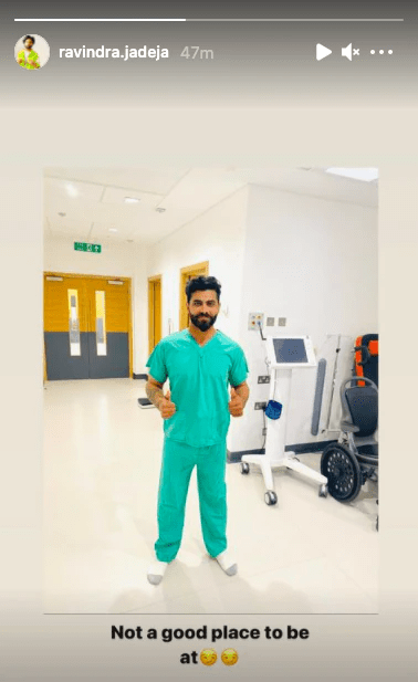 Jadeja uploaded a photo of himself on his Instagram story from a hospital wearing a green scrub. He captioned his Instagram story: “Not a good place to be at”.