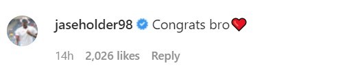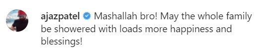 New Zealand spinner Ajaz Patel, who scripted history with the all 10 first-innings wickets against India in Mumbai last year, congratulated the adorable couple. He wrote: “Mashallah, bro! May the whole family be showered with loads more happiness and blessings!”