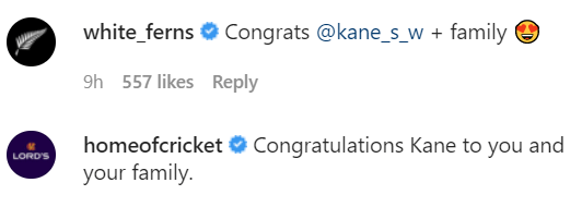 Many members of the cricket fraternity stepped forward and showered their blessing on Williamson’s family through their comments on the post.