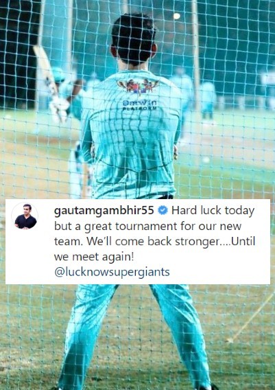 “Hard luck today but a great tournament for our news team. We’ll come back stronger… Until we meet again!” Gambhir wrote in an Instagram post that had a picture of him watching an LSG net session.
