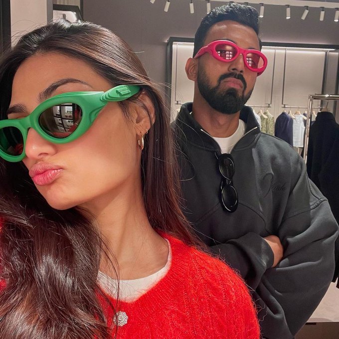 In the second image, Rahul and Athiya were seen wearing funky glasses.