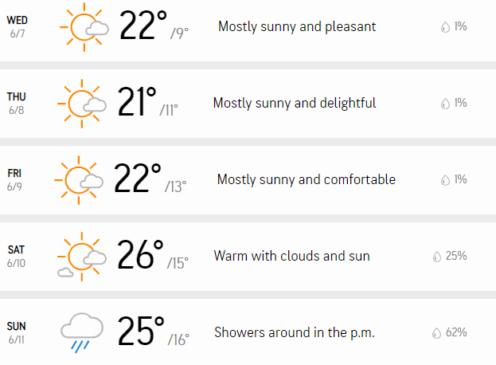 Day 1: The weather on the opening day is expected to be mostly sunny and pleasant, with a maximum temperature reaching 22°C. There is only 1 % of forecast for rain on this day.