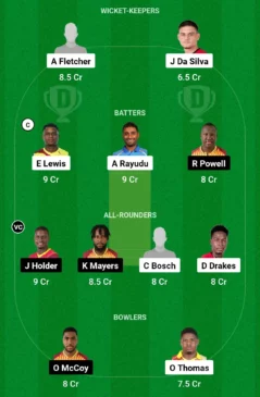 - Batters: Evin Lewis, Ambati Rayudu, Rovman Powell