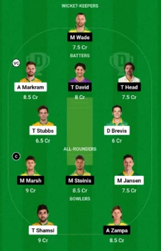 - Batters: Aiden Markram, Tim David, Travis Head, Tristan Stubbs, Dewald Bravis