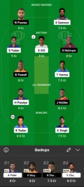 - Batters: Shubman Gill, Suryakumar Yadav, Rovman Powell, Shimron Hetmyer, Tilak Varma