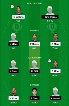 - Bowlers: Nahida Akter, Betty Chan, Akasha Yousaf