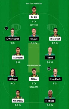 - Batters: Laura Wolvaardt, Sune Luus, Sidra Ameen, Bismah Maroof, Tazmin Brits