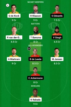 SA vs NED Dream11 Team for today’s match (October 17, 08:30 am GMT):