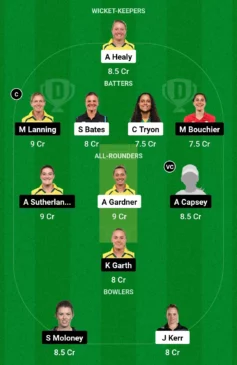- Batters: Meg Lanning, Suzie Bates, Chloe Tryon, Maia Bouchier
